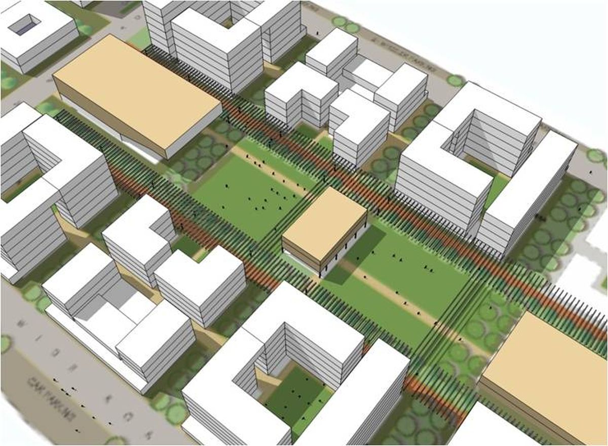 All vehicular traffic is limited to the periphery ensuring the cyclists and pedestrians to remain the only mode of movement – between the various internal zones and facilities.