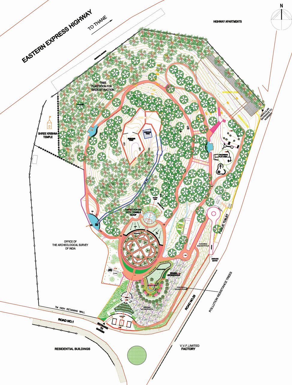 The upgradation of the 9 Acre Jawaharlal Nehru Udyan was part of a concerted initiative of the Municipal Corporation of Greater Mumbai (MCGM) to upgrade public gardens across the city. This densely wooded garden is wrapped around a single hill and topped by the remnants of the 17th Cent. – bastion of the Sion Fort. The fort was built by the British between 1669 & 1677 on a hillock in Sion to protect the seven islands from the territories held by the Portuguese to the North.