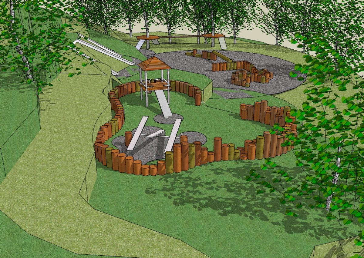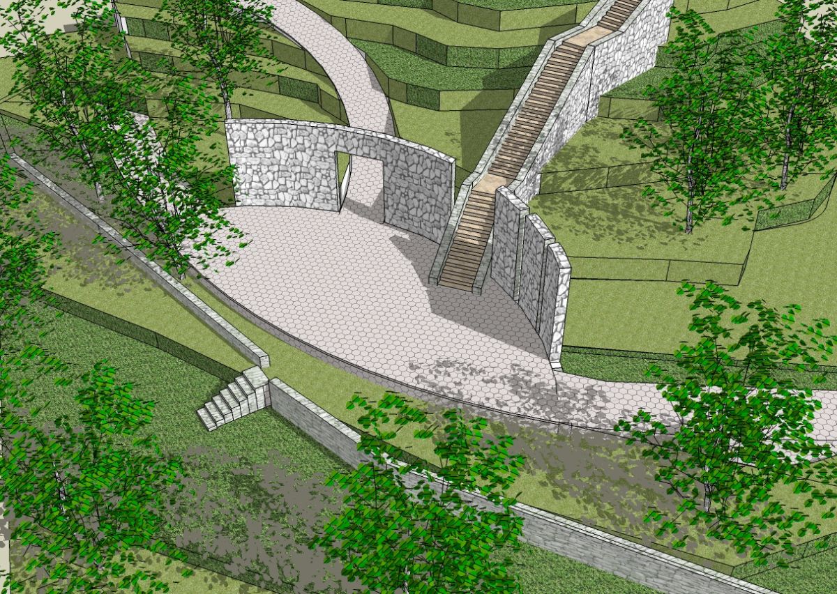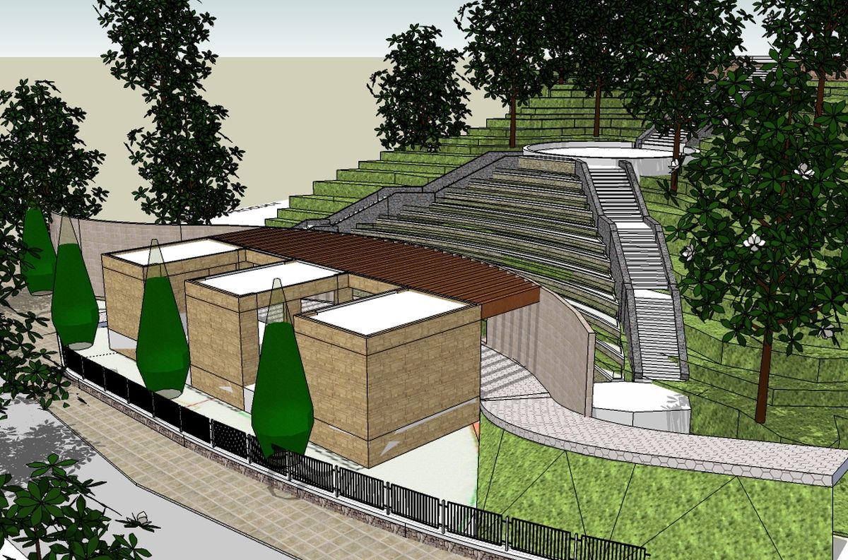 Node 4 - forms a further extension to this area with an amphitheatre tucked into the hill with a Tensile Roof for shade which can be used for numerous activities.